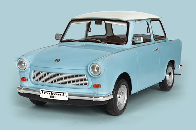 Със своята известна кароцерия (Duroplast), устойчива на ръжда, и със своя двутактов двигател Трабант се превръща в истински символ на автомобилната история.